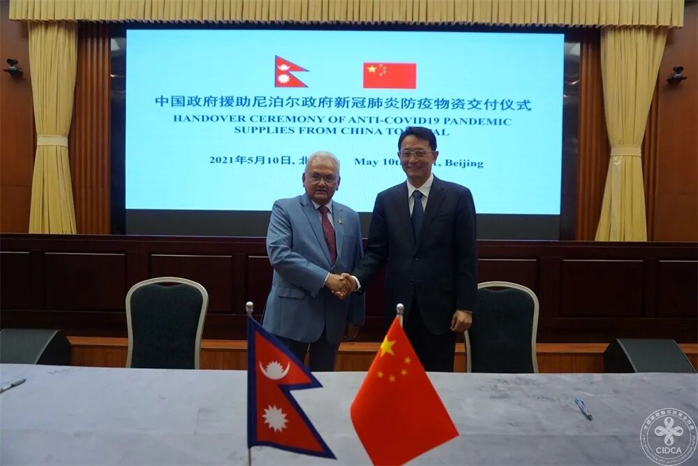 2021年5月10日,中国政府援助尼泊尔政府新冠肺炎防疫物资交付仪式在北京举行。国际发展合作署副署长邓波清和尼泊尔驻华大使潘迪出席。